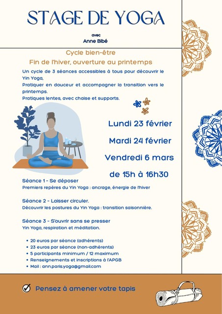 YIN YOGA – Lundi 23, mardi 24 février et vendredi 6 mars 2026
